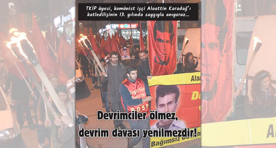 Karşımızda ölümüyle partiyi, sınıfı ve devrimi onurlandırmış bir yoldaş var. Ama ben onun ölümünden çok yaşamı üzerinde duracağım. Zira Alaatin Karadağ yoldaş şahsında biz gerçekte ölümü kadar yaşamıyla, dahası ölümünden çok yaşamıyla partiyi, sınıfı ve devrimi onurlandıran bir komünist devrimci ile yüzyüzeyiz.