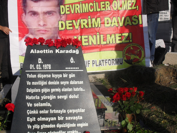 Son olarak İzmir’e geçmiştir ve bir dizi metal fabrikasında çalışmıştır. Çalıştığı dönem, bizim genelde olduğu gibi İzmir’de de önemli kayıplar yaşadığımız, belli nedenlerle İzmir’i kısmen boşaltmak durumunda da kaldığımız bir evredir. Bu aynı dönemde Alaattin Karadağ, bütün bunlardan hiçbir biçimde etkilenmeksizin, büyük bir inanç ve coşkuyla sınıf çalışması yürütmektedir. 1999 Mart tarihli partiye başvuru metni bunun açık ve dolaysız bir belgesidir. İzmir’de bir fabrikada çalışırken yazılmıştır, şimdi kamuoyuna açıklanan o partiye üyelik başvurusu. Bu başvurunun içeriği, hele de sınıf değerlendirmeleri üzerinden parti tercihinin izahına bağlanan son bölümleri, yoldaşın berrak bilincine olduğu kadar partiye bakışına da iyi bir örnektir. Buna birazdan ayrıca değineceğim.