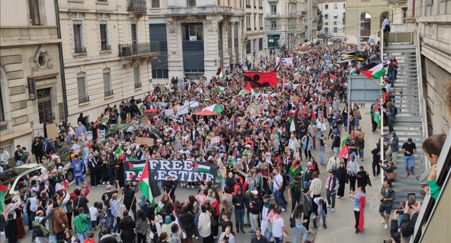Yürüyüş esnasında “Filistin’e özgürlük”, “Savaşa hayır!”, “Jenoside hayır!” sloganları sıklıkla atıldı. Şehir merkezindeki tiyatro meydanında bir konuşma daha yapıldı. Konuşmada, “Kadının kurtuluşu, devlete, savaşa ve kapitalizme karşı tüm emekçilerle, sömürülen ve ezilenlerle omuz omuza mücadeleden geçiyor” mesajı tekrar vurgulandı. İzinsiz olmasına rağmen, polis bu defa eyleme saldırmadı. Geçen yıl yapılan 8 Mart eylemine ise polis saldırmış ve geniş bir tepki toplamıştı. Bine yakın kişinin katıldığı yürüyüş saat 19’da başlayıp 21’de Claramatte parkına ulaştı. Yürüyüş, bundan sonra yapılacak eylemlerde buluşma çağrısıyla sona erdi.