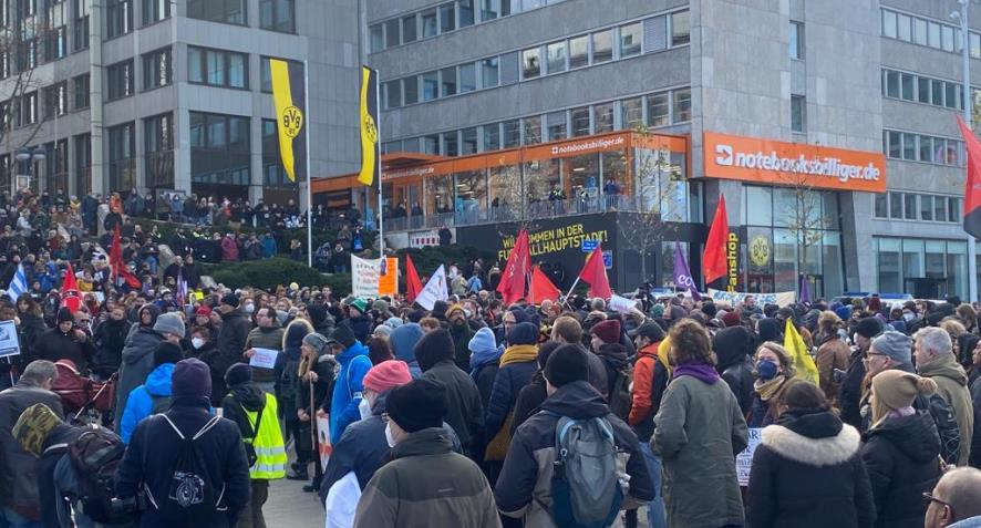 Tümüyle polis şiddeti, cinayetleri ve artan polis devleti uygulamalarına karşı yapılan eyleme Dortmund RJ (Avrupa Devrimci Gençlik Birliği) ve BİR-KAR çalışanları pankart ve bayrakları ile katılarak saldırılara karşı devrimci tutumlarını ortaya koydu. Eyleme yerli kurumlardan, anti faşist örgütlerin yanısıra MLPD (Almanya Marksist Leninist Partisi) katıldı. MLPD, birçok eylemde provokatif tutumları ile tanınan ve kendilerine "Anti-Deutsch" (Anti-Alman) diyen İsrail yanlısı bir grubun saldırısına uğradı. Alman polisinin içinde cirit attığı, özel olarak polis tarafından kullanılan bu grup, anti komünist eğilimleriyle bilinmekte ve her seferinde komünizmin değerlerine saldırganlığı kendisine iş edinmektedir. MLPD’ye yönelik bu saldırıyı asıl olarak komünizmin değerlerine bir saldırı olarak gören sınıf devrimcileri, bu saldırılara karşı cepheden militan bir tutum alarak püsküttü.