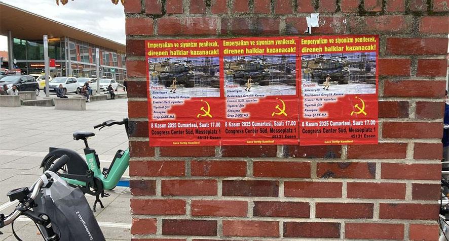 Bu çerçevede, Frankfurt’ta göçmen emekçilerin yoğunlukta olduğu ve politik olarak da önem arzeden kimi semtler ile Rüsselsheim’da afişleme çalışması yapıldı. Afişlerin ertesi gün Frankfurt’un özellikle Gallus semtinin kimi yerlerinde özel bir tarzda söküldüğü görüldü. Bunda gecenin sloganında geçen siyonizm ibaresi ile orak-çekiç gibi devrimci sembollerin bazı gerici odaklarda yarattığı “rahatsızlığın” etkili olduğu tahmin ediliyor.