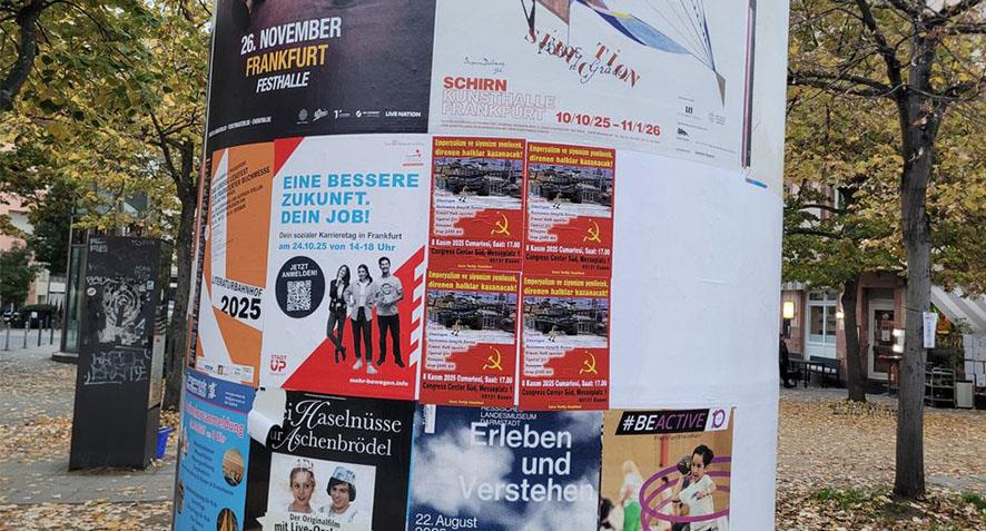 8 Kasım’da Essen’de yapılacak merkezi gece yaklaşırken, Frankfurt’ta da hazırlıklar devam ediyor. Emekçi ziyaretleri, bilet satışları ve gündeme gelen etkinliklere katılım gibi araçlarla sürdürülen hazırlıkların bir parçası olarak afiş çalışması da gerçekleştiriliyor.