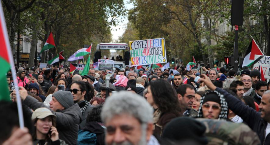4 Kasım Cumartesi günü başta Paris olmak üzere onbinlerce işçi, emekçi ve genç Fransa genelinde sokaklara çıktı. Siyonist saldırılara karşı eylemlerin birinci ayında Paris'te 60 bin işçi emekçi ve genç Filistin halkıyla dayanışmak için sokağa çıktı.