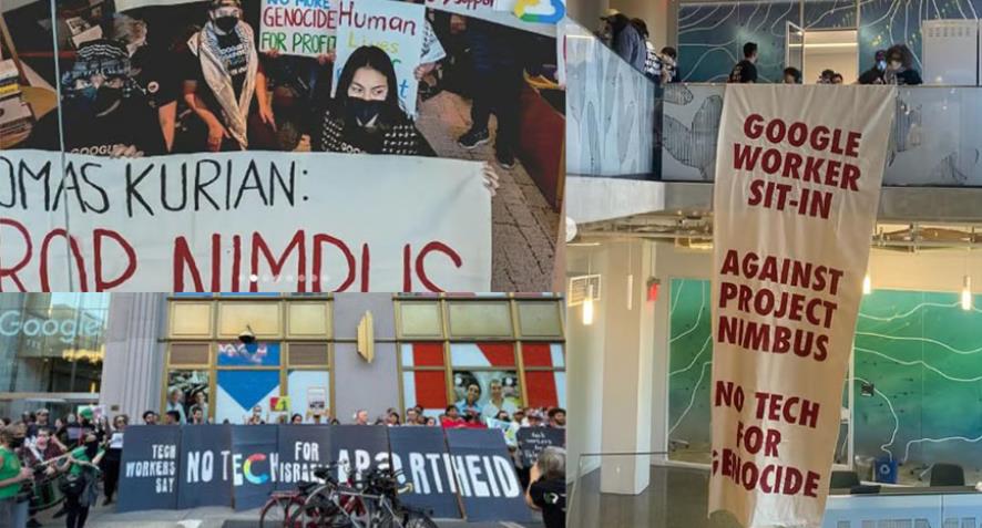 The Washington Post'da yer alan habere göre ofiste oturma eylemi yapan çalışanlar, “Google saklanamazsın!”, “Seni soykırımla suçluyoruz!”, “Soykırıma fon sağlıyorsun!” sloganları atarak Google 1,2 milyar dolar değerindeki anlaşmadan çekilmedikçe eylemlerine devam edeceklerini belirtti. Eyleme saldıran polis 9 kişiyi gözaltına aldı.