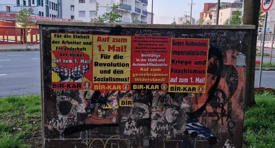 İşçi sınıfının birlik, dayanışma ve mücadele günü 1 Mayıs'a hazırlıklar sürüyor. Bu kapsamda sınıf devrimcileri Almanya’nın Hamm kentinde BİR-KAR imzalı afişlerle emekçileri alanlara çağırdı.