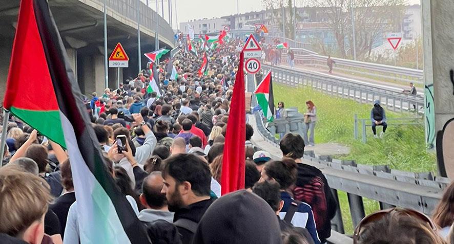 Küresel Sumud Filosu'na İtalya'dan katılacak teknelerin Sicilya Adası'nın doğusundaki buluşma noktalarından olan Katanya Limanı'nda bir araya gelen binlerce kişi, ellerindeki Filistin bayrakları ile şehir merkezine doğru yürüdü.