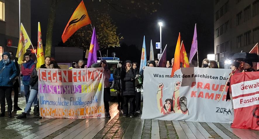 Ren Nehri’nin sağında bulunan Mülheim semtinde Türkiyeli, Alman ve İranlı ilerici solcu, devrimci gruplar bir araya geldi. Burada gerçekleşen miting ve yürüyüşe yağmura rağmen büyük çoğunluğu kadınlardan oluşan 250’nin üzerinde kişi katıldı.