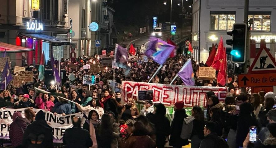 8 Mart Dünya Emekçi Kadınlar Günü’nde, dünyanın dört bir yanında olduğu gibi, İsviçre’nin Lozan kentinde de gece yürüyüşü gerçekleşti. Katılımda geçmiş senelere göre önemli oranda azalma olmasına rağmen, gençliğin katılımı çoğunluktaydı ve yürüyüşün başından sonuna kadar canlı geçmesini sağladı. Eylemlerin başını çeken ve genel olarak feminist bir havada geçen 8 Mart yürüyüşlerinin aksine, bu sene bir kısım katılımcı siyah giyinerek ve yüzleri kapalı bir şekilde katıldı.