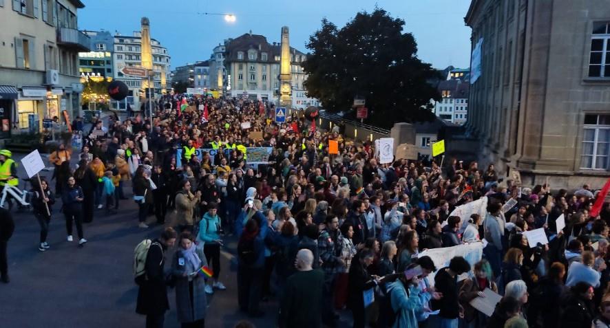 Yürüyüş Montbenon Meydanı’ndan başlayarak, Saint-François katedralinden önünden geçip, Devlet Konseyi’nin bulunduğu kaleye kadar sürdü.
