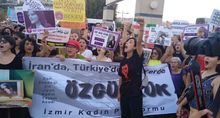 Tahran’da saçının bir kısmının göründüğü gerekçesiyle İran rejiminin ahlak polisi tarafından 14 Eylül’de gözaltına alınan ve işkenceyle katledilen 22 yaşındaki Mahsa Amini için protestolar sürüyor. Mezopotamya Ajansı’nda yer alan habere göre, Kürdistan Özgür Yaşam Partisi (PJAK) ve Doğu Kürdistan Özgürlük ve Demokrasi Birliği (KODAR) 17 Eylül’de yaptığı açıklamada İran ve Rojhilat kentlerinde yaşayan halklara Amini için genel grev çağrısı yaptı. Ayrıca İran Kürdistan Partileri İşbirliği Merkezine bağlı partiler, İran Komünist Partisi-Kürdistan Örgütü ve Rojhilatli bir grup parti ve demokratik kitle örgütleri de genel greve katılım çağrısı yaptı.