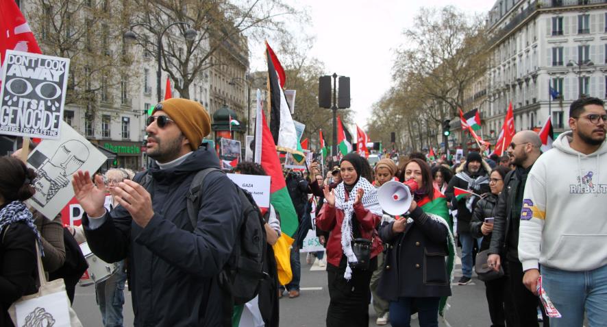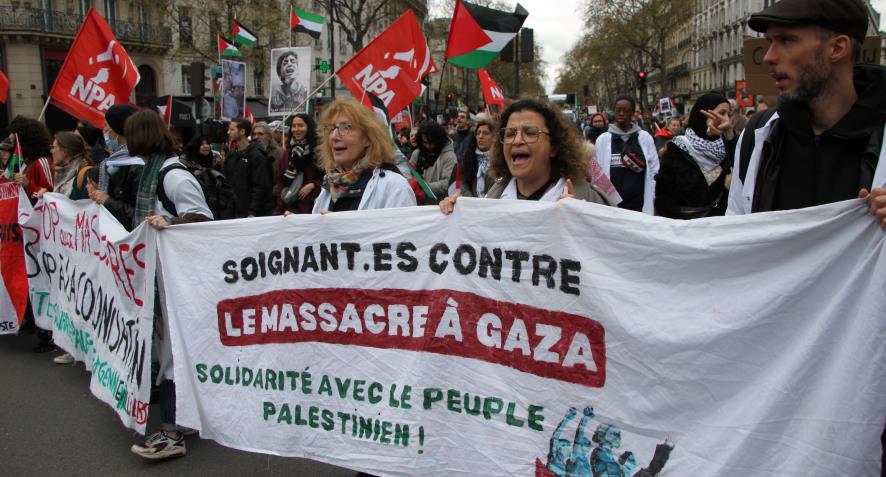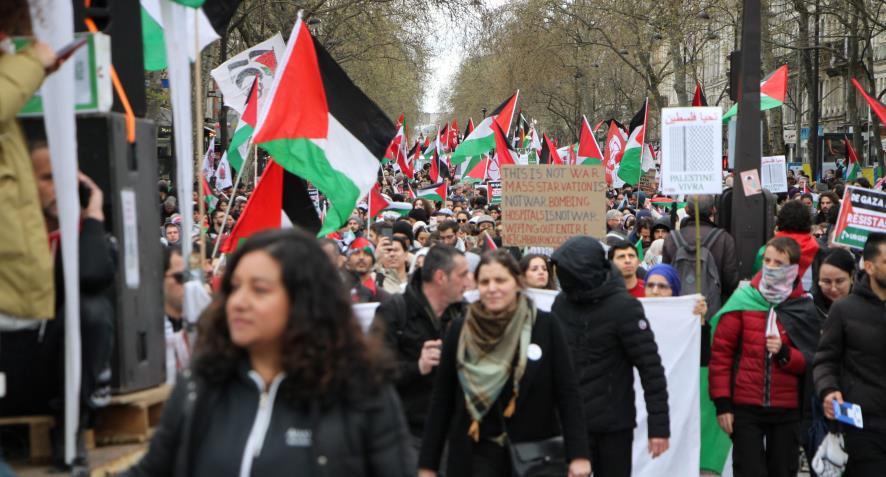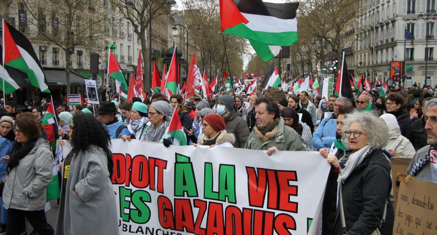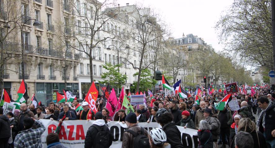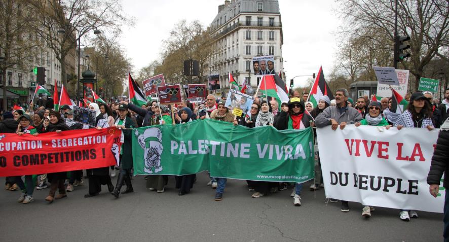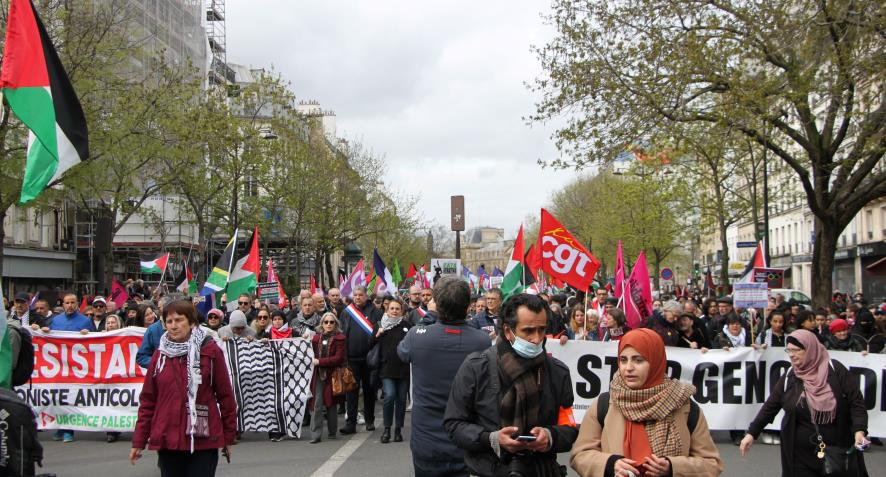 Aralarında Fransız Komünist Partisi, Yeni Anti-kapitalist parti, Fransa Komünist İşçi Partisi, işçi sendikalarından CGT, FSU, Solidaire öğrenci sendikalarından Liseliler sendikası, Ulusal öğrenci sendikası, kadın örgütleri, Tunuslu işçiler derneği, Mağrip işçileri derneği, Filistin Fransa dayanışma dernekleri gibi onlarca parti sendika ve demokratik kurumlardan oluşan (CNPJDPİ) ''Filistinliler ve İsrailliler arasında adil ve kalıcı bir barış için ulusal kolektif'' bileşenleri 30 Mart Cumartesi günü eylemler gerçekleştirdi.