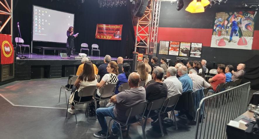 Ardından Sinan yoldaşın Dersim’de başlayıp Avrupa’da biten devrimci yolculuğunu, her dönemin toplumsal-siyasal gelişmeleriyle birlikte ele alan sinevizyon gösterisi yapıldı. Anlatı, coğunun Sinan yoldaşı şahsen de tanıdığı katılımcılara duygusal anlar yaşattı. Sineviyonun ardından, Sinanların, Habiplerin, Ümitlerin, Hatice ve Alaattinlerin çatısı altında savaştıkları, uğruna canlarını ortaya koydukları devrim davasının coğrafyamızdaki temsilcisi, partileri TKİP adına bir konuşma yapıldı. Konuşmada, onların sadece örgütlü birer “zor dönem devrimcisi” olmakla kalmayıp, birer dava insanı olduklarına işaret edilerek, onları anmanın, onların davasını her gün biraz daha ileriye taşımakla asıl anlamını bulacağı ifade edildi. Günümüzün siyasal ve sosyal bir tablosunu cizerek devam eden konuşmada, bunalımlar, savaşlar ve devrimler döneminin içerisinde olduğumuz, kapitalizmin krize çözümünün her zamanki gibi savaş ve faşizm olduğu gerçeğinin altı çizildi. Dünyanın dört bir yanında, Kürdistan ve Filistin’de, dünya halklarının kendilerine dayatılan, savaş, faşizm, sosyal yıkım ve sefalete direnişle karşılık verdiği, geleceğin bu toplumsal kavgalar içinde şekilleneceği belirtildi. Dünyanın her yerinde, kapitalizmin gittikçe keskinleşen çelişkilerine paralel olarak, günden güne artan ve sertleşen sınıf mücadelelerine önderlik edecek devrimci partilerin tayin edici önemine vurgu yapıldı. Bu anlamda partinin özü ve özeti olan yoldaşların, el üstünde tuttukları ve dahası ileriye taşıdıkları devrimci değerleri kıskançlıkla savunmak, onu yeni kuşaklara devretmek, sadece ve sadece örgütlü devrimci kimlik ve mücadeleyle mümkündür denildi.