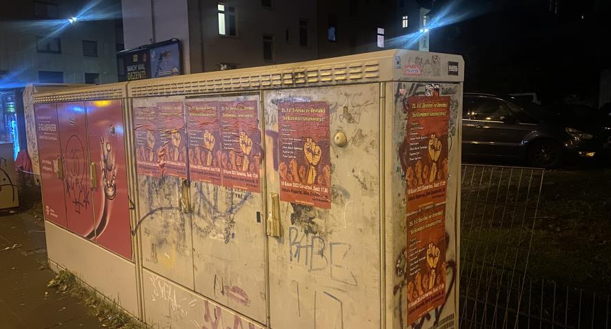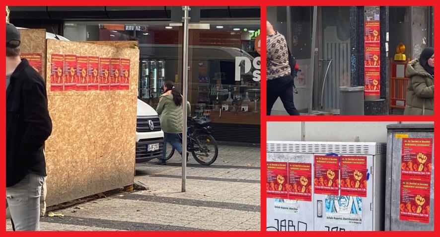 Wuppertal’da 18 Kasım’da “25. Yıl: Devrimi ve devrimci birikimimizi savunuyoruz” şiarıyla düzenlenecek merkezi gece için faaliyetler sürüyor. Yine şehrin en merkezi yerleri ve işlek caddeleri etkinliğin afişleriyle donatıldı. Geçen seneye göre afişleme çalışması daha yaygın yapıldı.