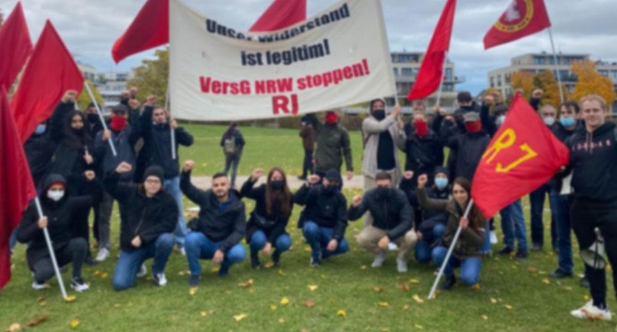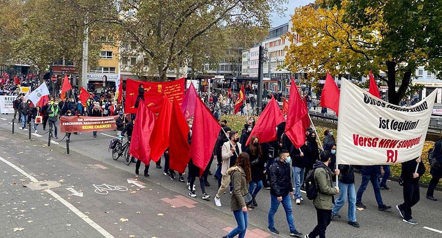 “NRW Gösteri Yasası’nı Durdurun! Temel Hakları Koruyun” Birliği’nin çağrısıyla yapılan eylem, kitlenin saat 13.00’da Friesenplatz’ta toplanmasıyla başladı. Söz konusu birlik, 100’ü katılımcısı olmak üzere 160 örgüt ve kurum tarafından destekleniyor. Toplanma yerinde anti-kapitalistler, anti-faşistler, politikacılar ve iklim aktivistleri, göçmen inisiyatifleri, sendikacılar, avukatlar, barış aktivistleri, futbol taraftarları, veri korumacıları gibi bloklar oluşturuldu. Her örgüt ve kuruluş kendisine göre bir blokta kortej oluşturdu. RJ ve BİR-KAR’ın da aralarında olduğu devrimci, sol, sosyalist parti, örgüt ve kurumlar genelde Anti-Kapitalist Blok’ta yürüdüler.