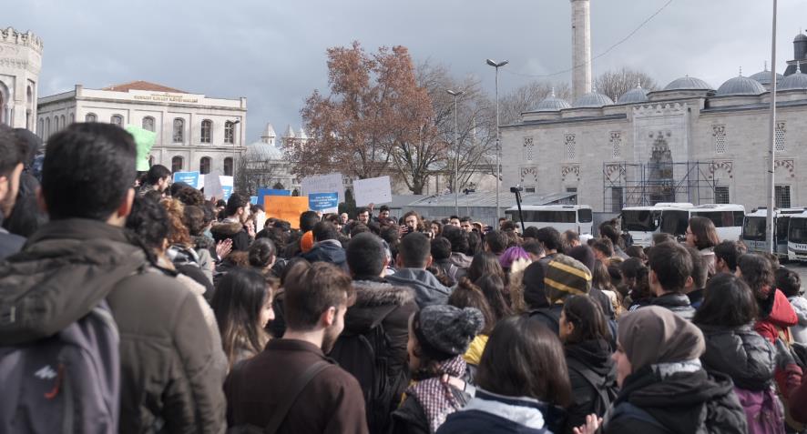 Yapılan zamlardan kaynaklı yemekhaneyi boykot eden öğrenciler, "Rektör elini cebimizden çek" ve "Krizin faturası öğrenciye kesilemez" yazılı pankartlar astı.