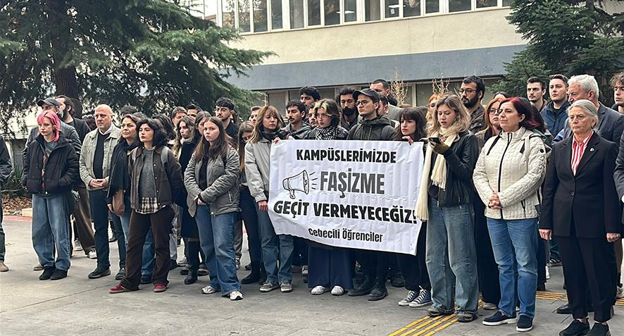 “Son iki gündür (10-11 Kasım) Ankara Üniversitesi Cebeci Yerleşkesinde gerçekleşen faşist sandırılara dair: Cebeci yerleşkesinde son günlerde pusu kurularak gerçekleşen fiziksel saldırıların, arkadaşlarımız şahsında gençlik hareketine göz dağı vermek amacı taşıdığını çok iyi biliyoruz. Gençliğin yükselen sesi bu faşist çetelerin saldırılarına geçit vermeyecek kadar güçlüdür. Her fırsatta bizleri kriminalize etmeye çalışan, okullarımıza devlet eli ile yerleştirilen palalı saldırılardan sonra sırtları sıvazlanan, kadın arkadaşlarımızı bıçakla yaralamalarına ragmen korunan/cezasız bırakılan gençliğin her hak arayışında karşılarına dikilen bu zihniyet asıl suçludur.