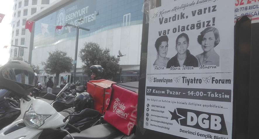 DGB'nin 25 Kasım Kadına Yönelik Şiddetle Uluslararası Mücadele Günü vesilesiyle 27 Kasım günü Taksim'de gerçekleştireceği etkinliğin çalışmaları devam ediyor. Etkinlik çalışmaları kapsamında Esenyurt Üniversitesi ve çevresinde el ilanları gençliğe ulaştırıldı. Birçok genç ile sohbetler gerçekleştirildi. Ayrıca Esenyurt Üniversitesi çevresi, Tabela Meydan ve Tabela alt geçide etkinlik afişleri asıldı.