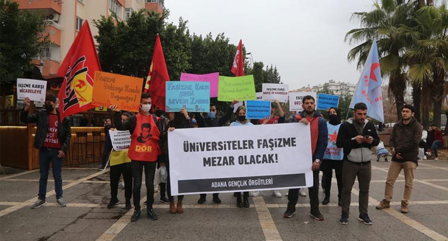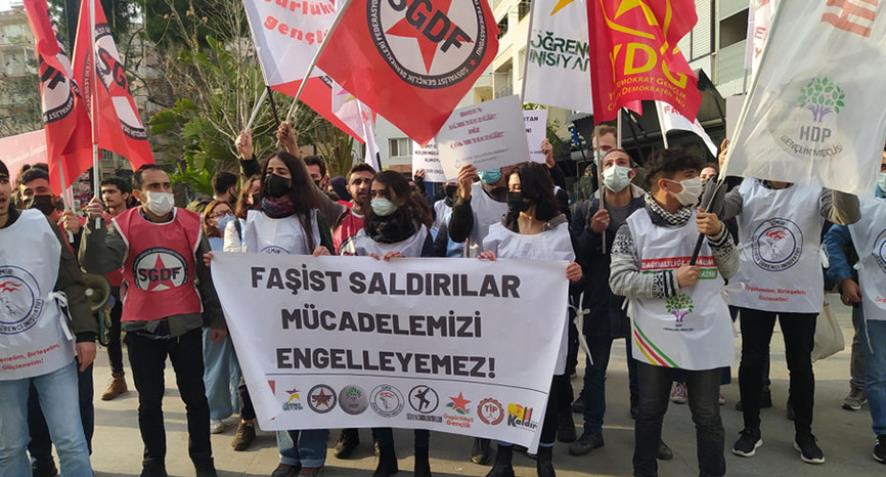 Öğrenciler saldırılara karşı “Faşizme karşı omuz omuza!” sloganları attı.