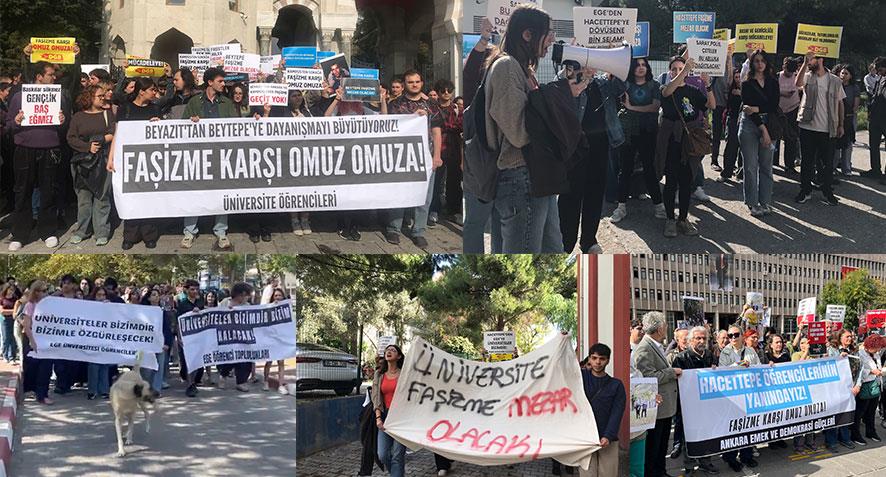“Geçen dönem olduğu gibi bugün de yağan soruşturmalara karşı diyoruz ki “Hepimiz oradaydık!” Hepimiz anti-demokratik kararlara karşı dersleri boykot edenlerdik, hepimiz Ali İsmail’in anısını mücadelesinde yaşatanlardık, hepimiz parasız beslenme hakkı için turnikeden atlayanlardık, hepimiz palalı faşist çeteye karşı kampüsünü canı uğruna savunanlardık. Buradan kayyum rektör Cahit’e çağrımızdır: Eğer öğrencinin yararını düşünmüyorsan, güvenliğini alamıyorsan, öğrencinin cebine giren 3 kuruşluk KYK’ya dahi göz dikiyorsan, barınma sorununu çözemiyorsan istifa et! Söz, yetki karar üniversite bileşenlerine!"
