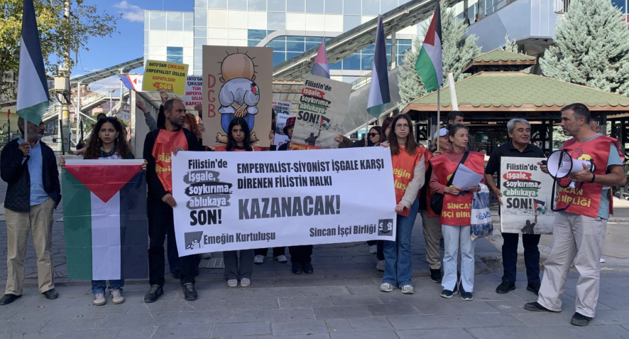Basın açıklamasında “Emperyalistler yenilecek direnen halklar kazanacak!”, “Emperyalistler işbirlikçiler 6. Filoyu unutmayın!”, “Direnen Filistin halkı kazanacak!”, “Nehirden denize özgür Filistin!” sloganları atıldı.