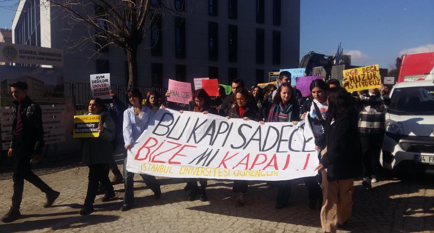 İstanbul Üniversitesi öğrencileri geçtiğimiz hafta İÜ Rektörlüğü tarafından üniversite kampüslerinin turizme ve ranta açılmasına karşı eylem düzenledi.
