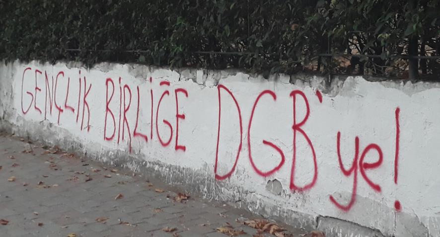 DGB Avcılar’da da öğrencilerin yaşadıkları mahalleye “Gençlik birliğe DGB’ye” yazılaması yaparak DGB saflarında örgütlenme çağrısını yükseltti.
