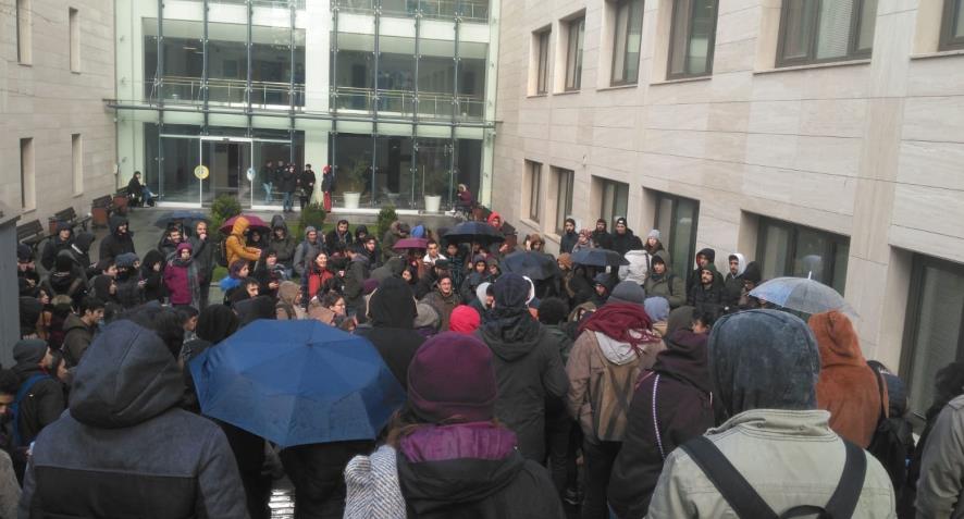 Bugün Beyazıt Ana Kampüs içerisinde forum düzenlemek isteyen öğrenciler, yoğun polis-ÖGB ablukası ve engellemelerle karşılaştı. Fakülteler arası geçiş yasağı ile birlikte dayatmalara maruz kalan öğrenciler İletişim Fakültesi’nin bahçesinde forum gerçekleştirdi. Forumun ardından Beyazıt Ana Kapı önüne yürüyüş yapıldı.