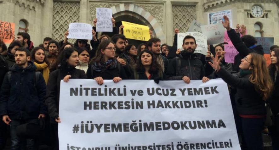Geçtiğimiz günlerde İstanbul Üniversitesi SKS tarafından yapılan resmi açıklamada 3 öğün olarak verilen yemeğin tek öğüne indirildiği açıklanmıştı. Bunun üzerine İstanbul Üniversitesi Öğrencileri “Nitelikli ve ucuz yemek herkesin hakkıdır. #İÜYemeğimeDokunma” ozaliti açarak Beyazıt Ana kapı önünde eylem gerçekleştirmişti.