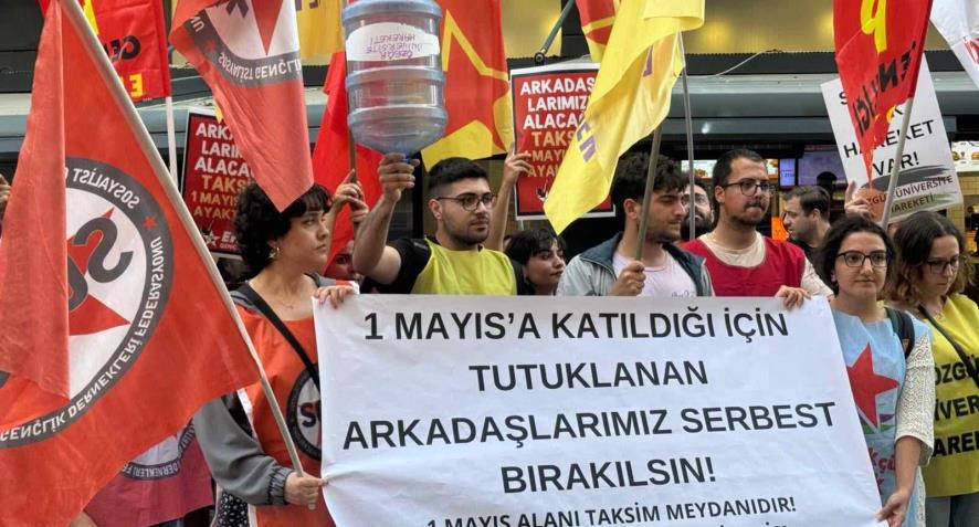 Taksim’de 1 Mayıs iradesi gösteren ilerici-devrimci güçlere dönük gözaltı ve tutuklama saldırısı İzmir’de gençlik örgütleri tarafından protesto edildi. 7 Mayıs günü saat 19.00’da Alsancak Kıbrıs Şehitleri Caddesi Halk Bank önünde bir araya gelen gençlik örgütleri, “1 Mayıs’a katıldığı için tutuklanan arkadaşlarımız serbest bırakılsın! 1 Mayıs alanı Taksim Meydanıdır. Her yer Taksim her yer direniş!” şiarlı pankartın arkasında Türkan Saylan Kültür Merkezi (TSKM) önüne kadar yürüyüş gerçekleştirdi.