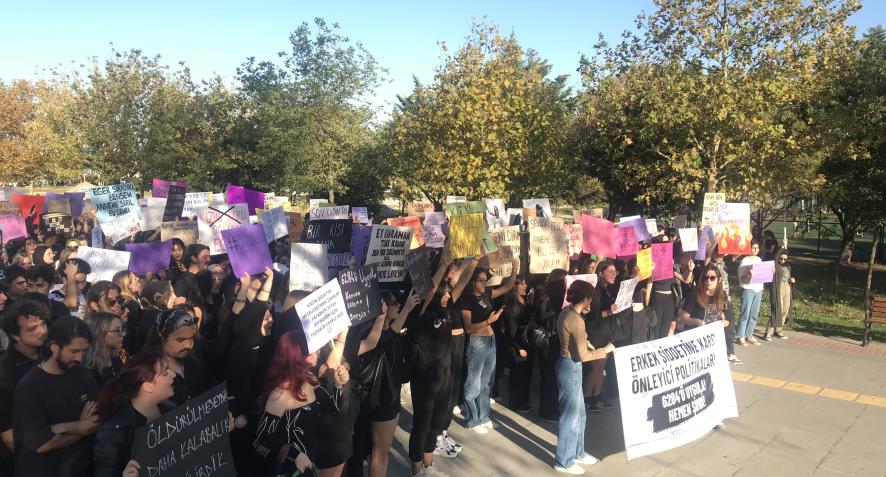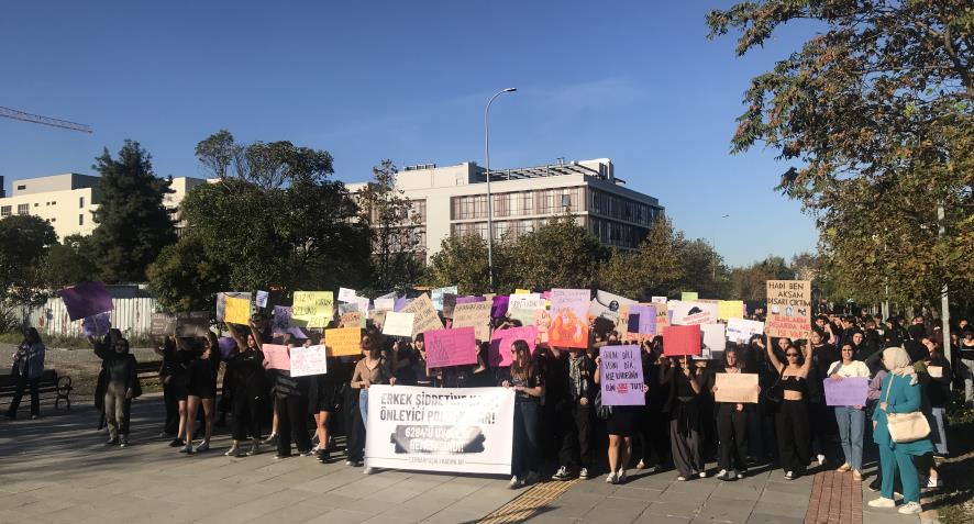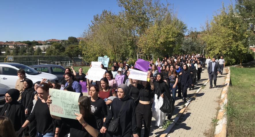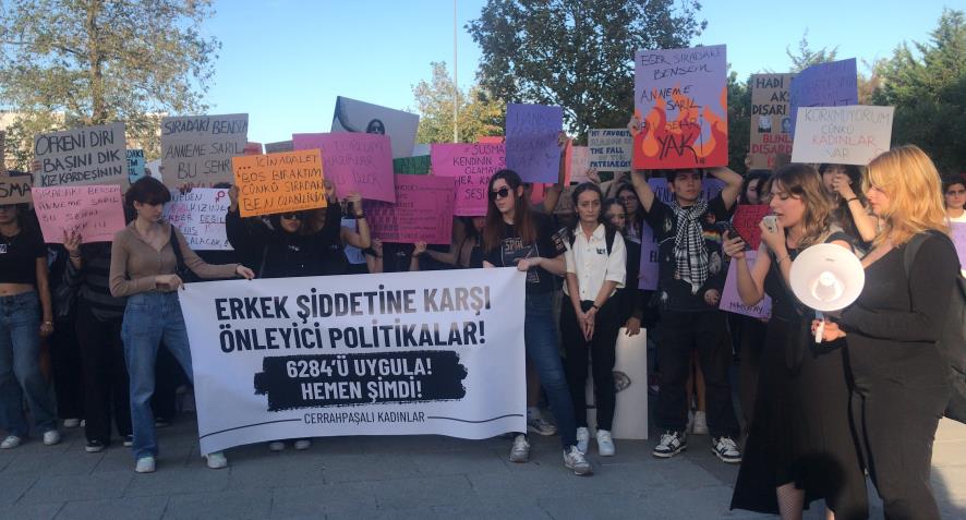 İstanbul Üniversitesi Cerrahpaşa Avcılar Yerleşkesi’nde basın açıklaması ve yürüyüş gerçekleştirildi. Yemekhane önünde buluşan öğrenciler “Erkek şiddetine karşı önleyici politikalar! 6284’ü uygula hemen şimdi!” pankartıyla ana kapıya yürüyüş gerçekleştirdi. Ana kapıya yapılan yürüyüşün ardından basın açıklaması okundu ve şunlar denildi: