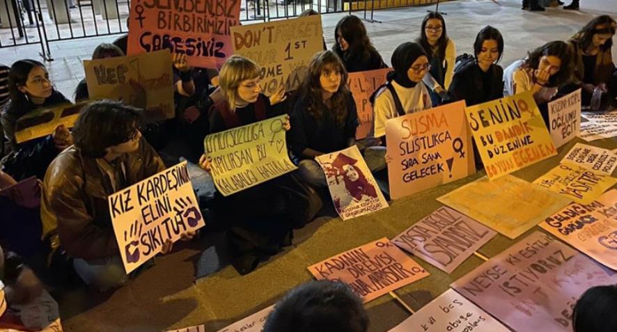 “İstanbul’un göbeğinde katledilen Ayşenur, İkbal ve diğer erkek şiddetine maruz kalmış bütün kadınlar için söylüyoruz ki; bir kişi daha eksilmeyeceğiz. Bütün kadınlar sokaklarda rahat yürüyene dek kadın dayanışmasını kampüslerde, sokaklarda ve yaşamın her alanında yükseltmeye devam edeceğiz. Kız kardeşlerimizi katleden ataerkil düzene karşı yılmayacağız. Kaybedilen, katledilen kardeşlerimiz nerede demeye devam edeceğiz. Bizlere dayatılan bu karanlığa karşı karanlıklar gider aydınlıklar kalır diyoruz.”