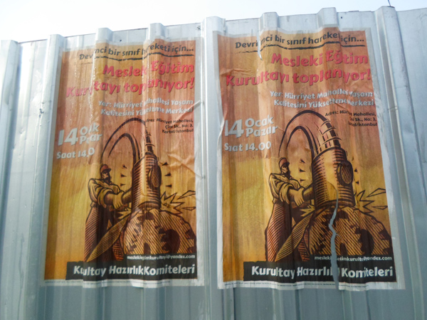 Kurultay çağrısının yer aldığı “Devrimci bir sınıf hareketi için Mesleki Eğitim Kurultayı’nda buluşuyoruz” şiarlı afişler Kocaeli Üniversitesi Umuttepe Kampüsü ve çevresi, Dünya Bankası, İSU Köprüsü, Devlet Hastanesi Durağı, E-5, Halkevi ve Vilayet gibi öğrencilerin ve işçilerin yoğun olarak kullandığı güzergahlarda kullanıldı.