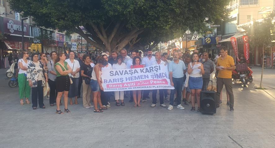 Antakya Emek ve Demokrasi Platformu, barış taleplerini haykırdı. Sevsen-Nevzat Şahin Ortaokulu karşısında yapılan eylemde açıklamayı İHD Hatay Şubesi Eş Başkan Mürsel Tonguç Salmanoğlu okudu.
