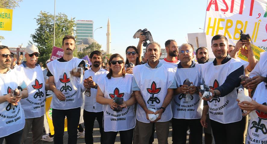 İnsan Hakları Derneği (İHD) Urfa, Antep ve Adıyaman Şubeleri barışın sembolü olarak beyaz güvercinler uçurdu.