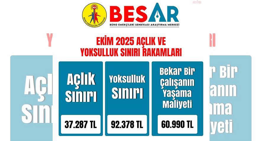 Birleşik Kamu-İş Konfederasyonunun Ar-Ge birimi KAMU-AR Kasım 2025 açlık ve yoksulluk sınırı araştırmasının sonucunu açıkladı. Açıklamada şu veriler yer aldı: