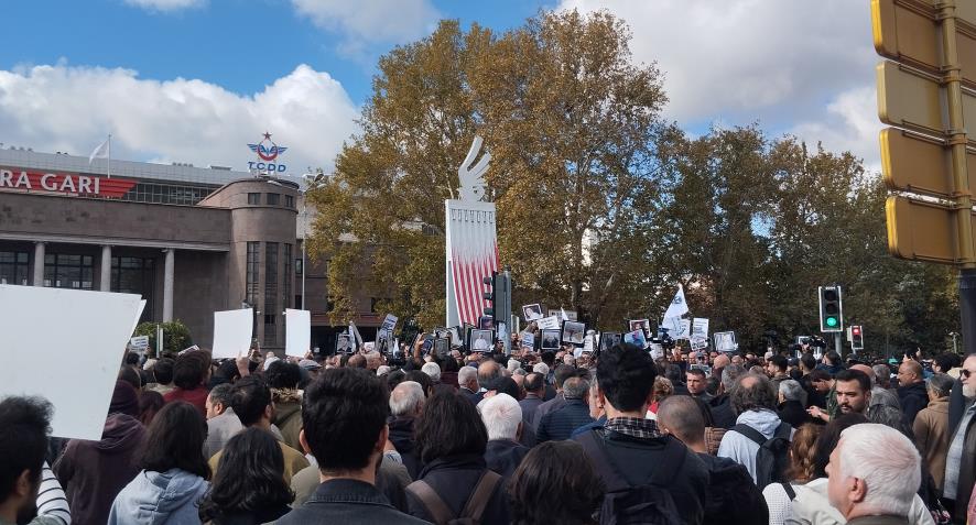 10 Ekim 2015’te Ankara Gar katliamında yaşamını yitiren 104 kişi bugün saat 10.04’te Gar önünde yapılan anma ile anıldı. Anma öncesinde 10 Ekim Barış Derneği’nin çağrısıyla Ulus Metro önünden Gar’a yürüyüş yapıldı.
