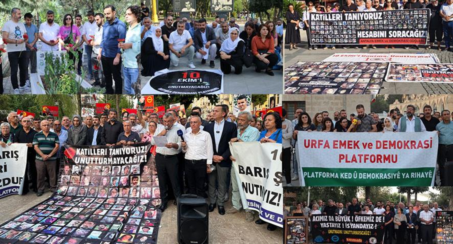 Saldırı olacağı istihbaratını miting tertip komitesinden gizleyenleri unutmadık. Katliamın yaşandığı alana ambulansların girmesini geciktirip, alana önce TOMA’ları sürenleri, yaralılara gaz sıkma emri verenleri unutmadık…