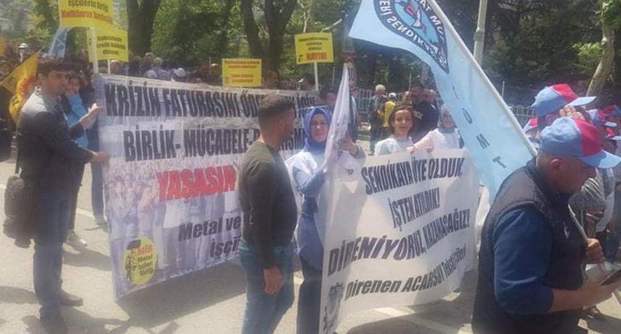 Metal İşçileri Birliği ve Tekstil İşçileri Birliği ise “Krizin faturasını ödememek için Birlik-Mücadele-Dayanışma / Yaşasın 1 Mayıs!” pankartıyla alanda yerini aldı.