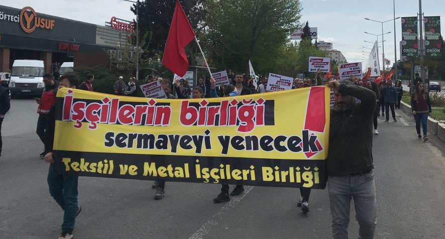 Tekstil ve Metal İşçileri Birliği, 1 Mayıs mitingine “İşçilerin birliği sermayeyi yenecek!” şiarlı pankartla katıldı. İşçilerin çalışma ve yaşam koşulları ile ilgili taleplerin yer aldığı dövizlerle beraber, “Emperyalist savaş ve saldırganlığa son!”, “Kahrolsun ücretli kölelik düzeni!” gibi dövizler taşıdılar. Yürüyüş boyunca sık sık “İşçi sınıfı savaşacak, sosyalizm kazanacak!”, “Yaşasın 1 Mayıs!”, “Yaşasın işçilerin birliği, halkların kardeşliği!” ve “Kurtuluş yok tek başına ya hep beraber ya hiçbirimiz!” sloganları atıldı.