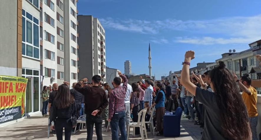 Hayat pahalılığının, yoksulluğun arttığına ve ifade özgürlüğüne dönük saldırılara dikkat çekilen konuşmada “Bugün bu etkinliğin yasaklanması ile 22 derneğin iradesi ve sözü elinden alındı” dedi.