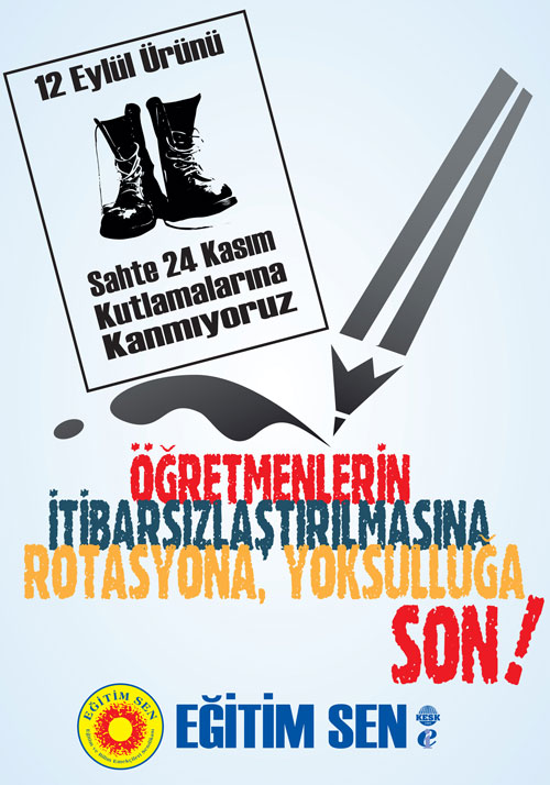 AKP iktidarı sürecinde 24 Kasım “öğretmenler günü” olarak kutlanmaya devam ediyor. 24 Kasım, 12 Eylül darbesinden 1 yıl sonra öğretmenler günü olarak ilan edildi. İlan eden kişi ABD’nin “bizim çocuklarının” başındaki darbeci Kenan Evren’di.