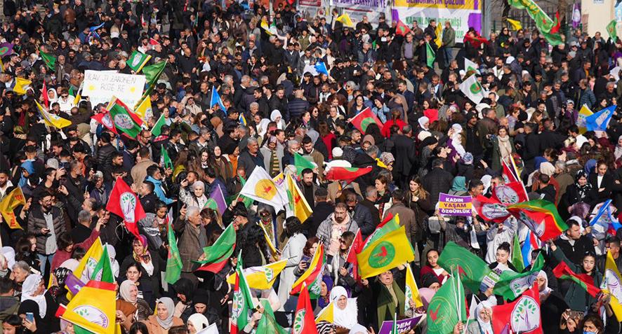 Diyarbakır’da, Demokratik Bölgeler Partisi (DBP) ve Halkların Eşitlik ve Demokrasi Partisi’nin (DEM Parti) çağrısıyla “Barış için özgürlük!” mitingi gerçekleştirildi. Mitinge binlerce kişi katıldı.