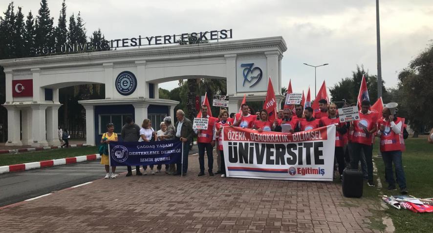 Gözaltına alınan 20 kişi götürüldükleri Bornova Türkan Özilhan Hastanesi’nden serbest bırakıldı. Hastane önünde öğrenciler adına yapılan açıklamada saldırılara rağmen üniversitelerde devrimci faaliyetin süreceği vurgulandı. Eylem sloganlarla sonlandırıldı.