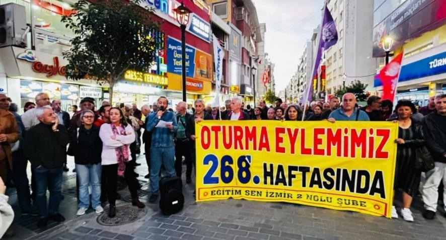 İzmir’de EĞİTİM SEN İzmir 2 Nolu Şube’nin, KHK ile ihraç edilen kamu emekçilerinin işlerine iade için düzenlediği oturma eylemi 266’ncı haftasında Karşıyaka İskelesi karşısında düzenlendi.
