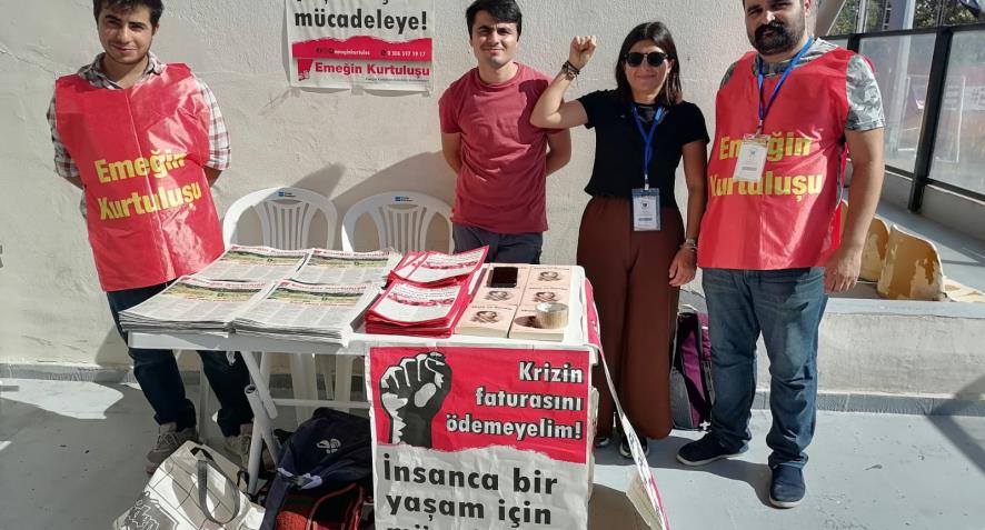 Stadyumun iki girişinde Emeğin Kurtuluşu ve Devrimci Gençlik Birliği stantı açıldı. Stantta “Krizin faturasını ödemeyelim! İnsanca bir yaşam için mücadeleye” şiarlı Emeğin Kurtuluşu bildirileri ve iki haftalık Emeğin Kurtuluşu’nun dağıtımı yapıldı.