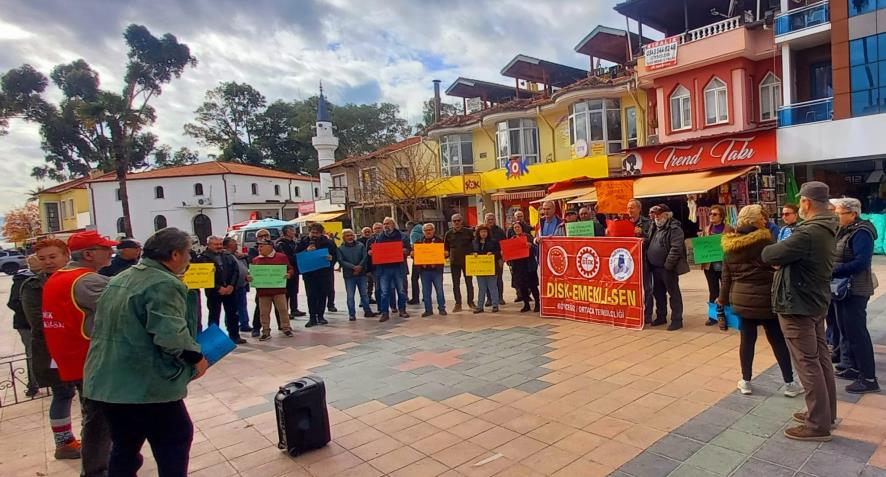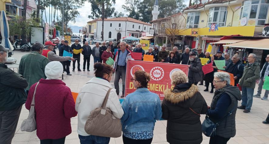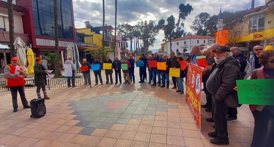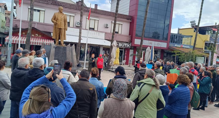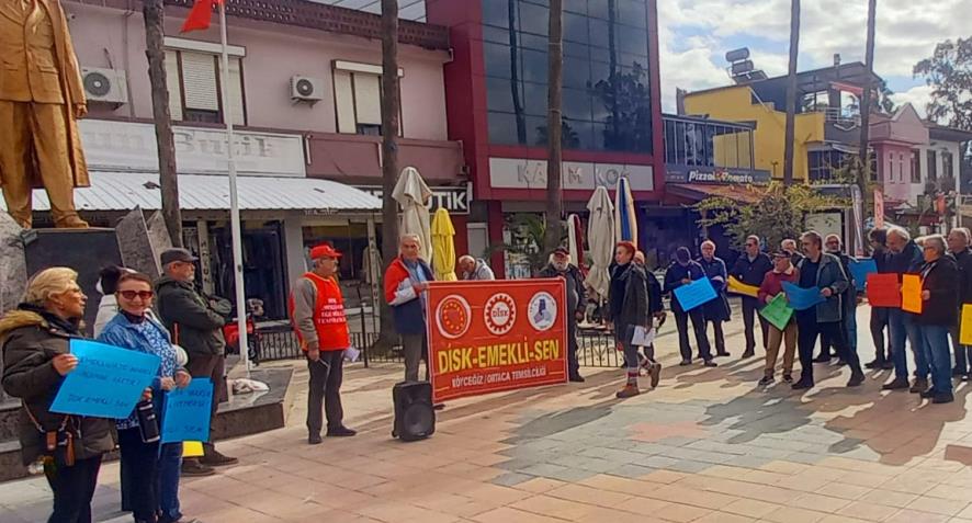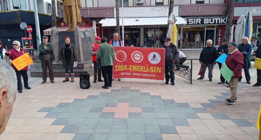 Emekliler Köyceğiz Atatürk Meydanı’nda “TÜİK verileri kirli ve yalan. Açlık, yoksulluk, sefalet gerçek!” şiarıyla basın açıklaması düzenledi. Saat 13.00'da düzenlenen eylemde ilk olarak Nazım Hikmet'in “Hürriyet kavgası” ve Hasan Hüseyin Korkmazgil'in “bıçak kemikte” şiiri okundu. Ardından basın açıklamasını DİSK Emekli Sen Ege Bölge Temsilcisi Aydın Ağlamaz okudu. TÜİK’in şaibeli enflasyon oranlarını hatırlatan Ağlamaz şu şekilde devam etti: