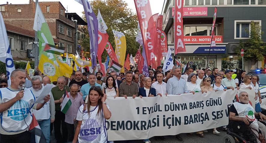 "Bugün bir kez daha ilericiler, demokratlar, devrimciler, sosyalistler, emekten yana örgütler, partiler olarak barış talebini dile getiriyoruz. Emperyalist işgale, kapitalist sömürüye karşı direnişler dışındaki savaşların halkların çıkarlarına olmadığını haykırıyoruz. Barışın ancak barış, özgürlük, eşitlik, refah içinde yaşamak isteyen halkların mücadelesiyle kazanılacağını söylüyoruz. Emperyalistlerin, sömürgecilerin dilindeki “barışın” ise halklara diz çöktüren bir şey olduğunu ve güvenilemeyeceğini haykırıyoruz."