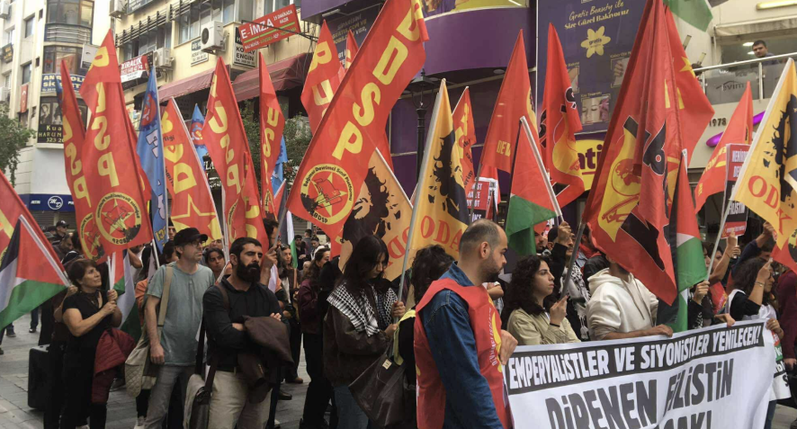 “Bugün dünyanın dört bir yanında işçiler, emekçiler, gençler ve kadınlar, Filistin halkıyla dayanışmak için meydanlara çıkıyor. İşçiler grevler düzenliyor, İsrail’e gönderilecek malların yüklenmesini reddediyor, emperyalist devletlerin başkentleri de dahil olmak üzere pek çok şehirde Filistin halkıyla dayanışma sloganları yankılanıyor. Dünyanın birçok ülkesinde Filistin halkıyla giderek güçlenen bir dayanışma yaşanıyor. Gıda ablukasını kırmak için oluşturulan en büyük insani yardım filosu olan Sumud Filosu halkların umudu ve dayanışma duygularının bir göstergesi olarak Gazze’ye ulaşmaya çalıştı. Onlarca gemi, yüzlerce insan Siyonist İsrail tarafından esir alındı. Gıda ve ilaç gibi temel insani ihtiyaçların taşındığı gemilere yönelik bu saldırganlık dört bir yanda gerçekleşen eylemlerle karşılandı. Filistin direniyor, direnmeye devam edecek! Bütün işçileri, emekçileri, gençleri ve kadınları Filistin halkının haklı, meşru ve tarihsel kazanımlarının yanında yer almaya davet ediyoruz. Emperyalist-Siyonist barbarlığa ve işbirlikçi devletlerin ikiyüzlü tutumlarına karşı eylemli dayanışmayı güçlendirmeye çağırıyoruz.”