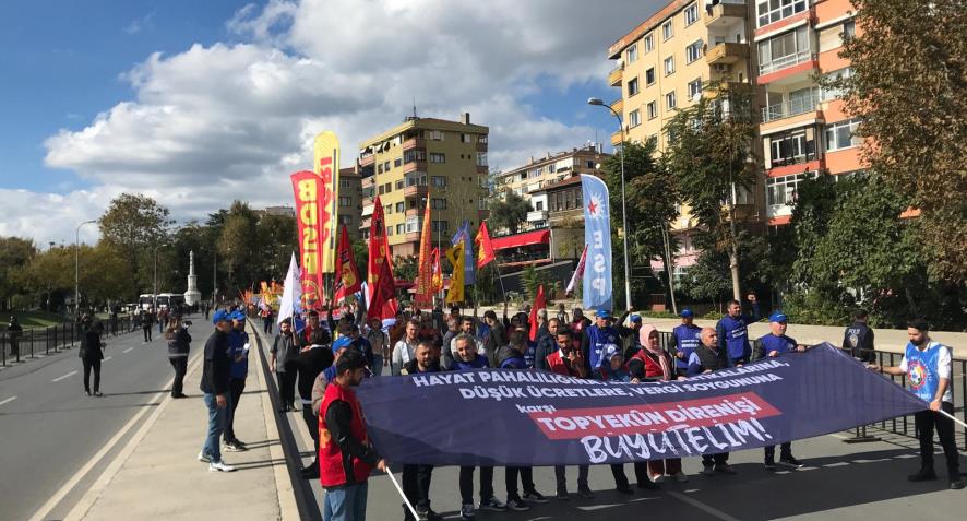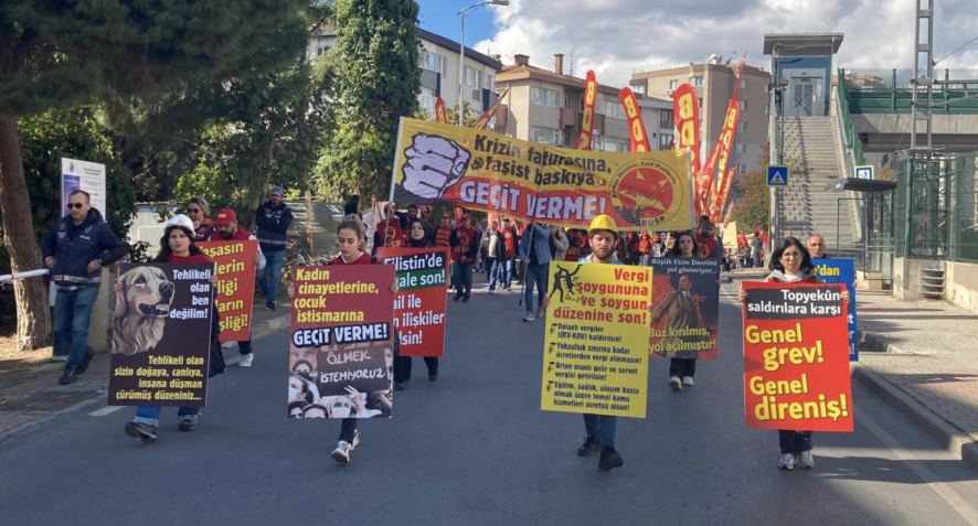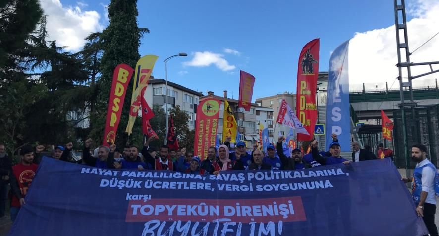 İstanbul’un Kartal ilçesinde “Düşük ücretlere, hayat pahalılığına, vergi soygununa, savaş politikalarına karşı topyekûn direnişi büyütelim!” şiarıyla İşçi Emekçi Mitingi gerçekleştirildi. Mitinge katılan kurumlar alana yapılacak yürüyüş için Başak İstasyonu’nda kortej oluşturdu.