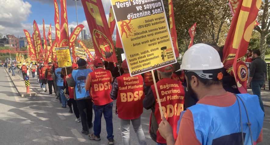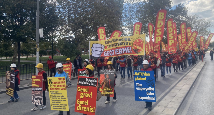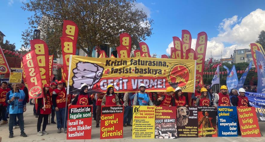 BDSP mitinge “Krizin faturasına, faşist baskıya geçit verme!” yazılı pankart ve “Kadın cinayetlerine, çocuk istismarına geçit verme!”, “Vergi soygununa ve soygun düzenine son!” “NATO’dan çıkılsın! Tüm emperyalist üsler kapatılsın!”, “Yaşasın işçilerin birliği halkların kardeşliği!”, “Filistin’de işgale son! İsrail’le tüm ilişkiler kesilsin!”, “Topyekun saldırılara karşı genel grev genel direniş!” yazılı dövizler ile katıldı.